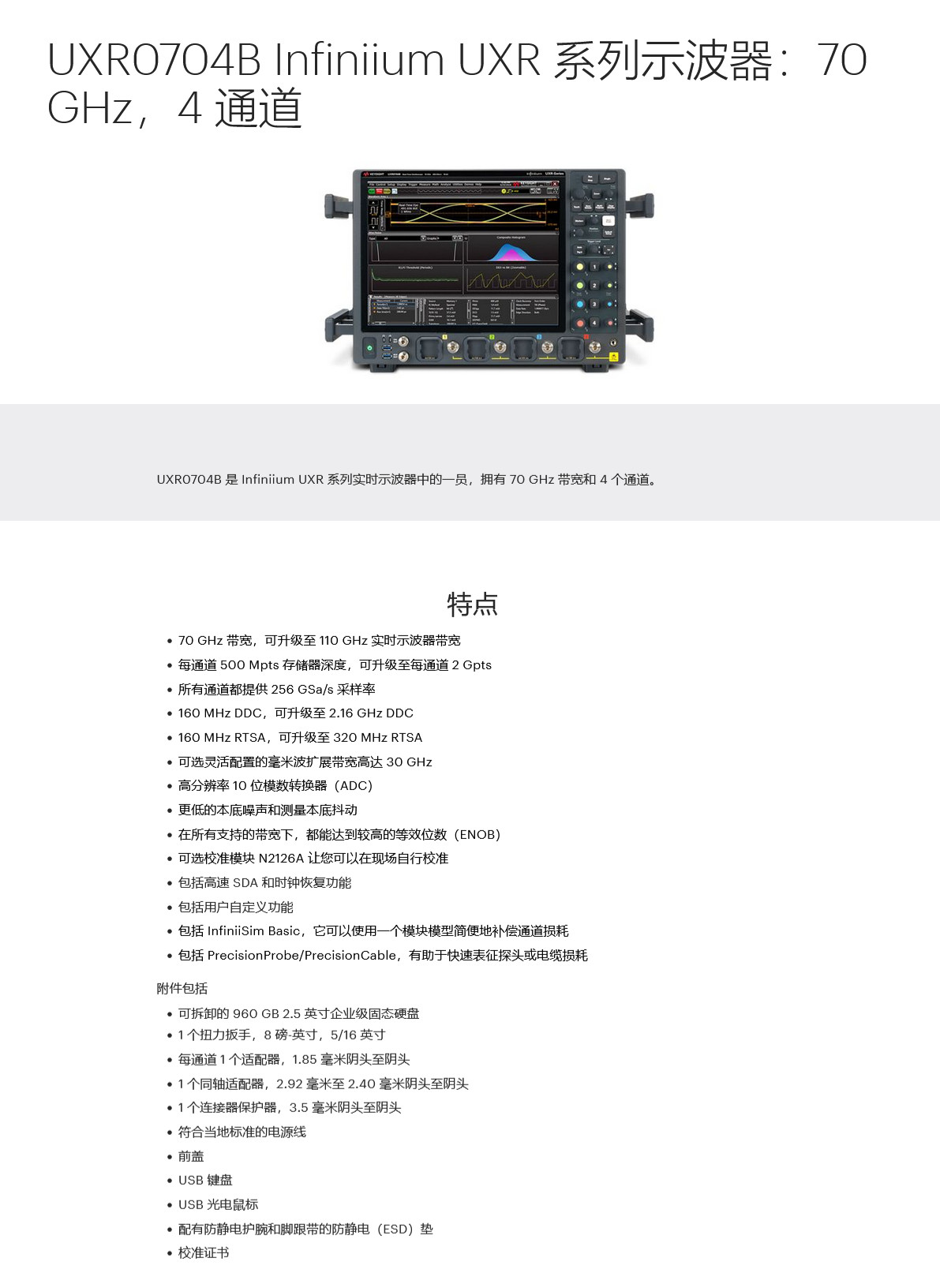 • 描述UXR0704B 是 Infiniium UXR 系列實(shí)時(shí)示波器中的一員,擁有 70 GHz 帶寬和 4 個(gè)通道