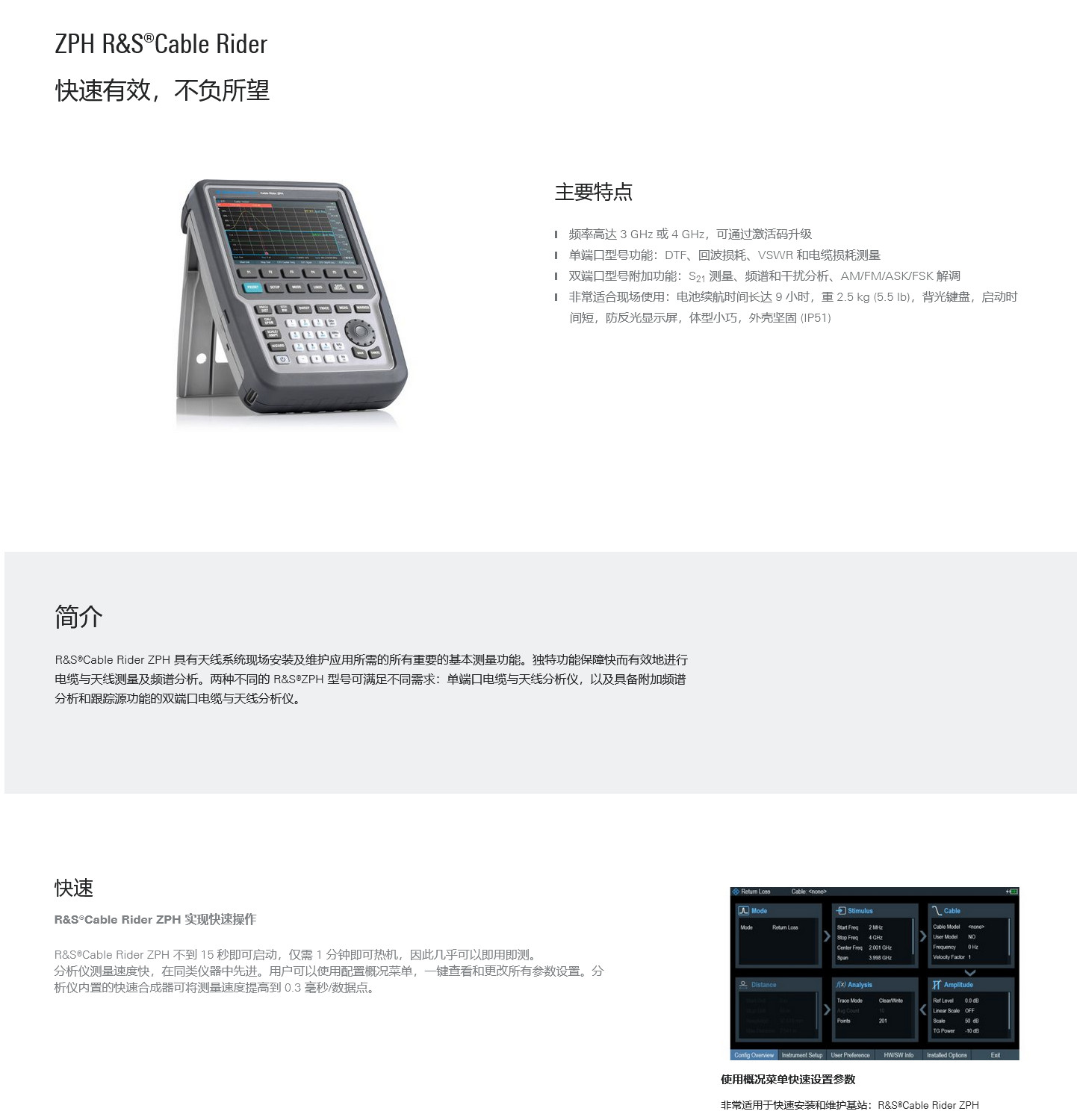 • 描述ZPH 具有天線系統(tǒng)現(xiàn)場安裝及維護應用所需的所有重要的基本測量功能。獨特功能保障快而有效地進行電纜與天線測量及頻譜分析。兩種不同的 ZPH 型號可滿足不同需求:單端口電纜與天線分析儀,以及具備附加頻譜分析和跟蹤源功能的雙端口電纜與天線分析儀。